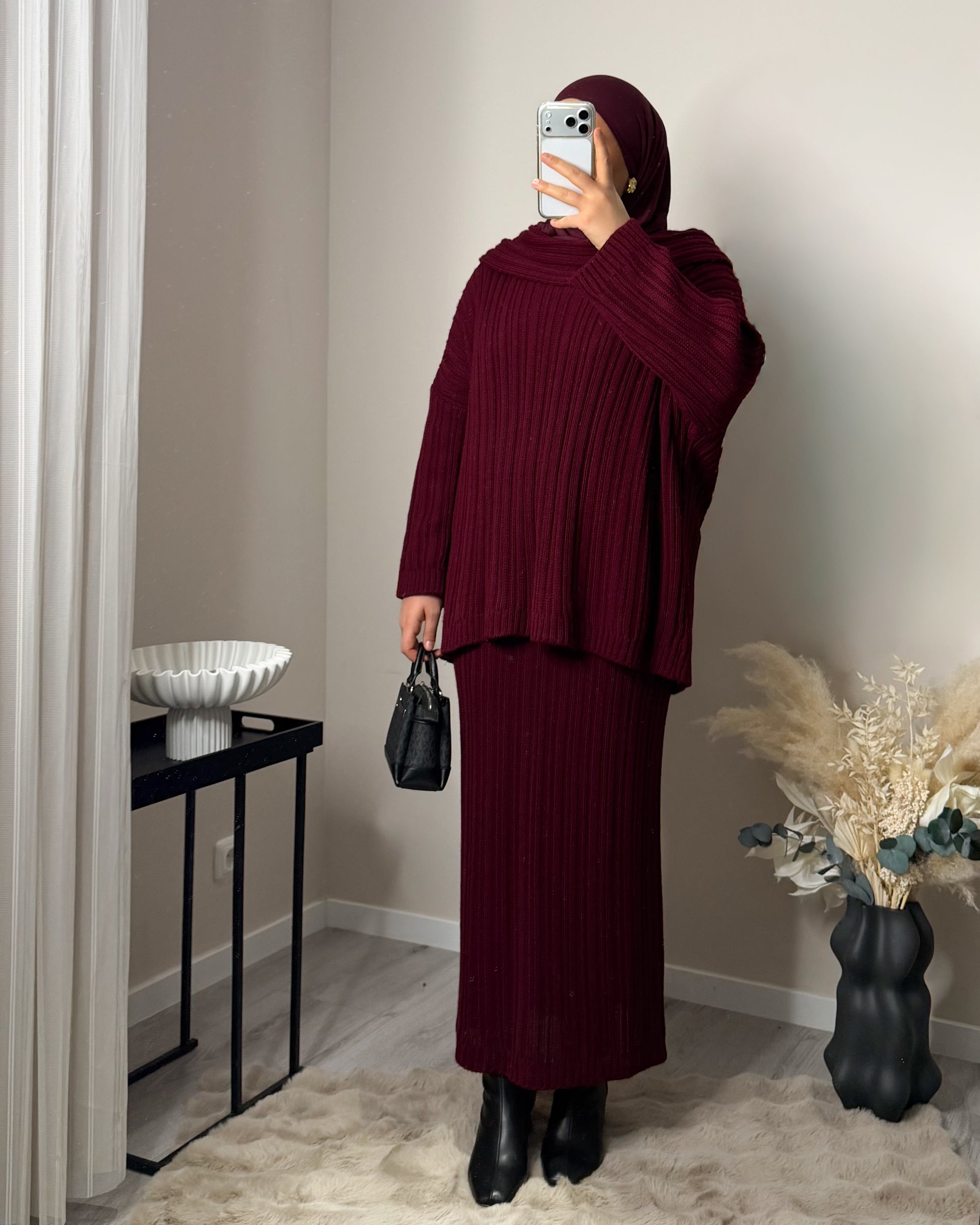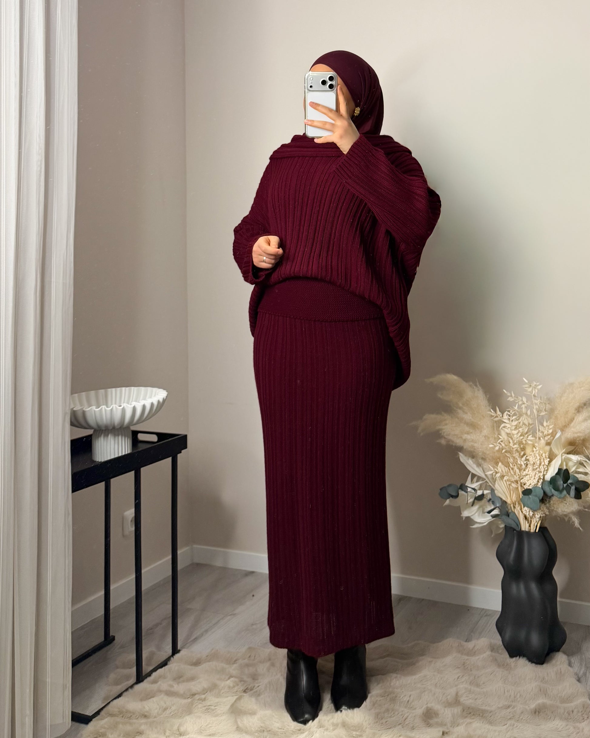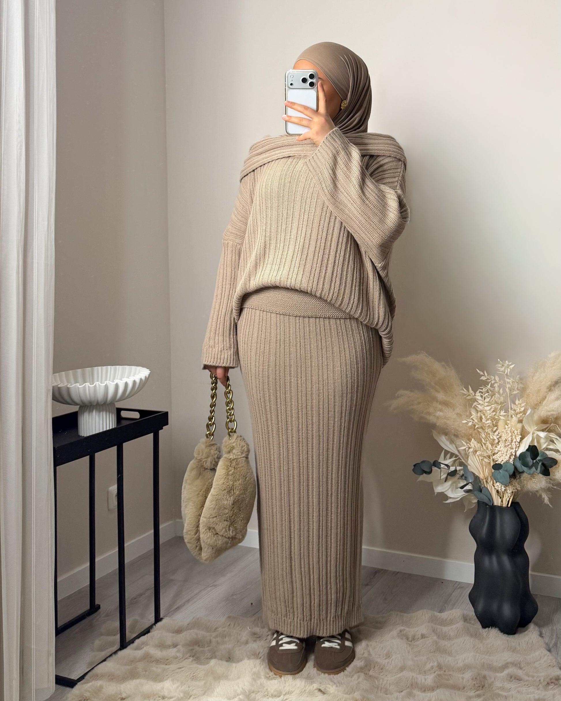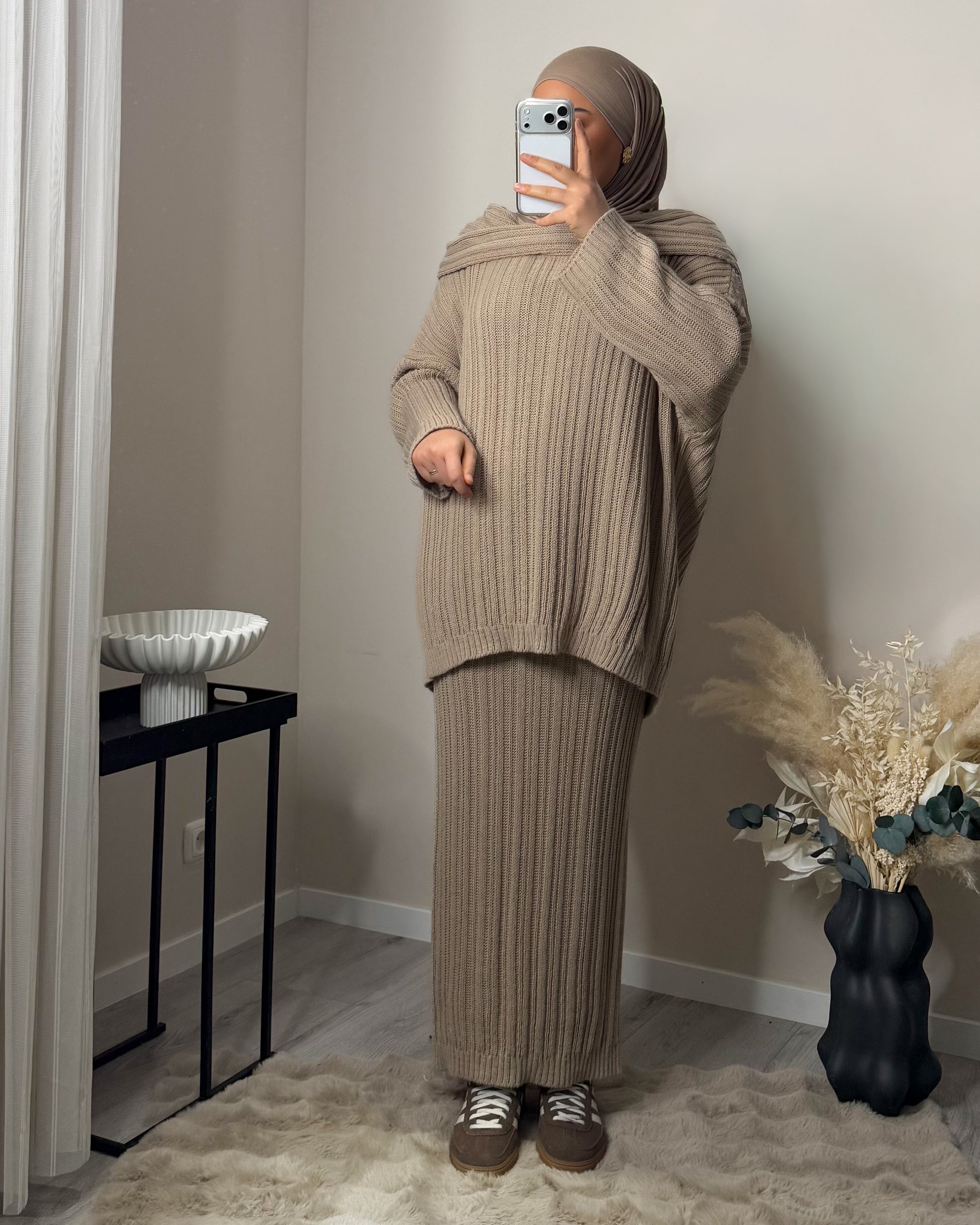 Unser Model ist 1,65m groß und trägt unsere Einheitsgröße.
