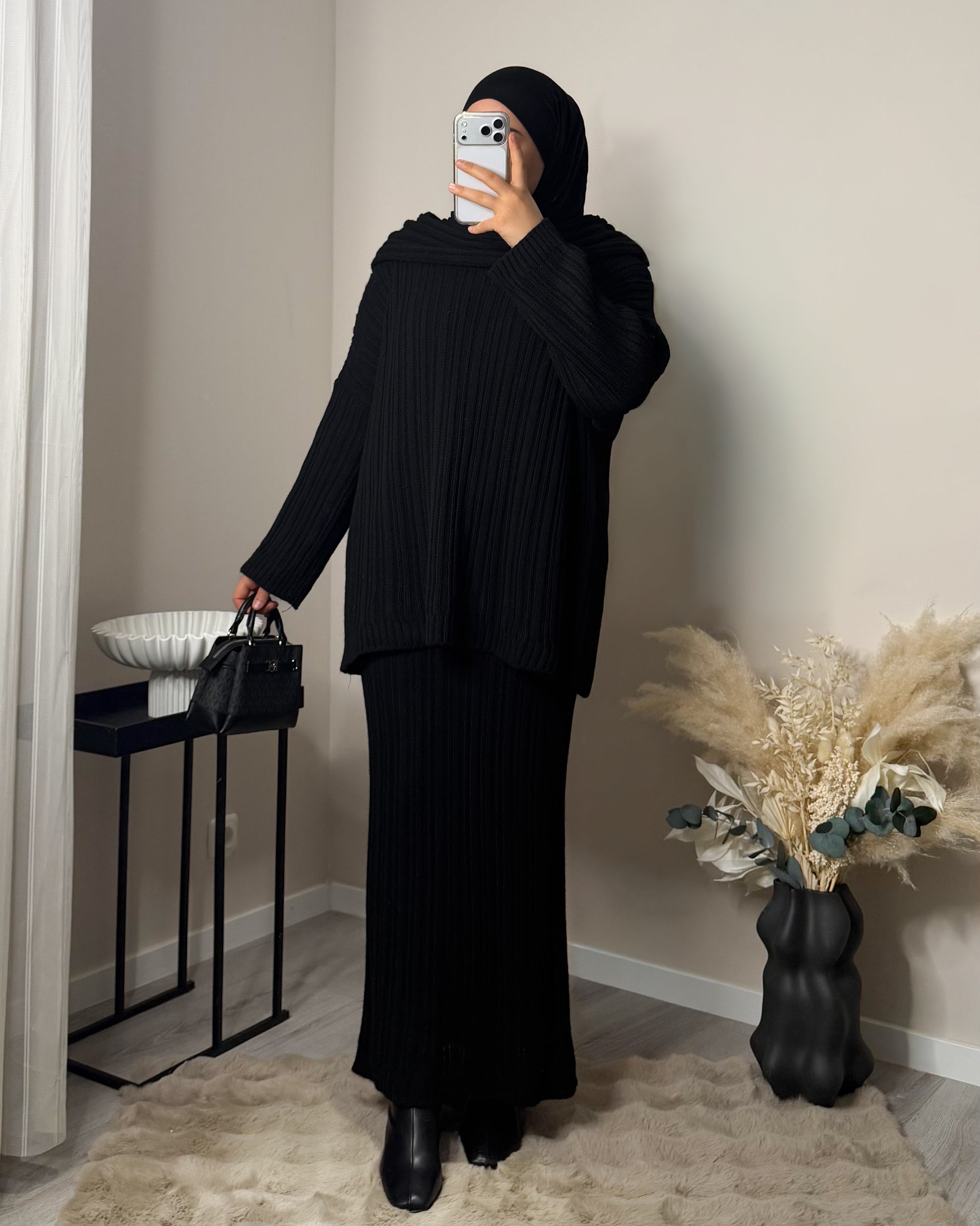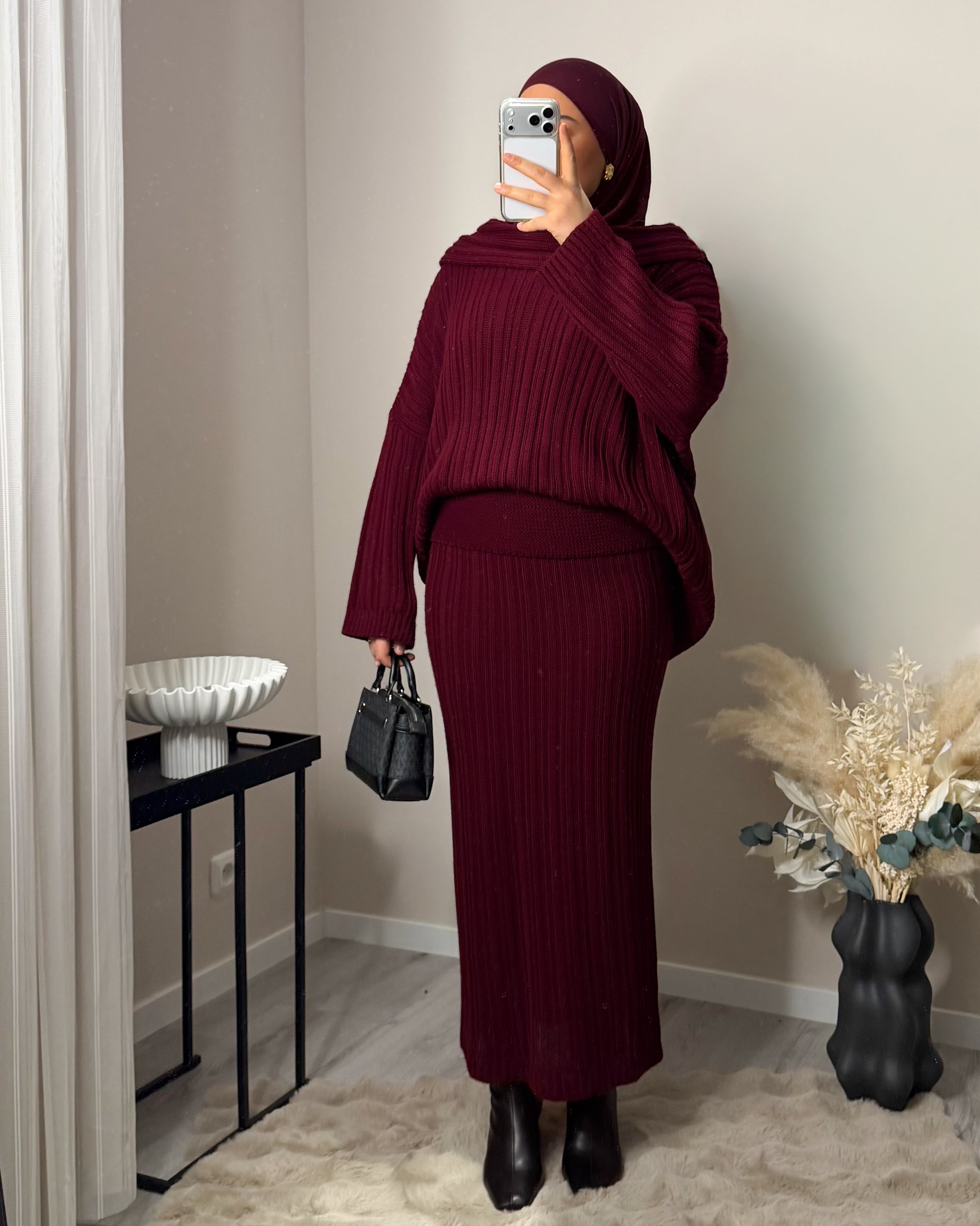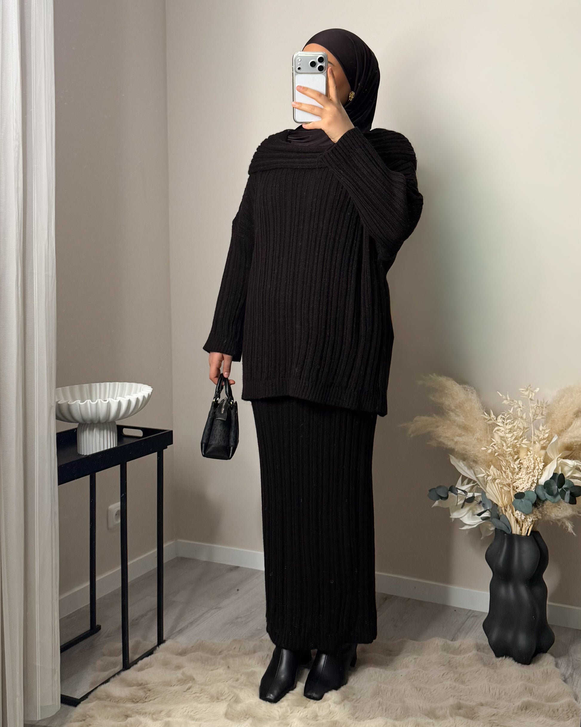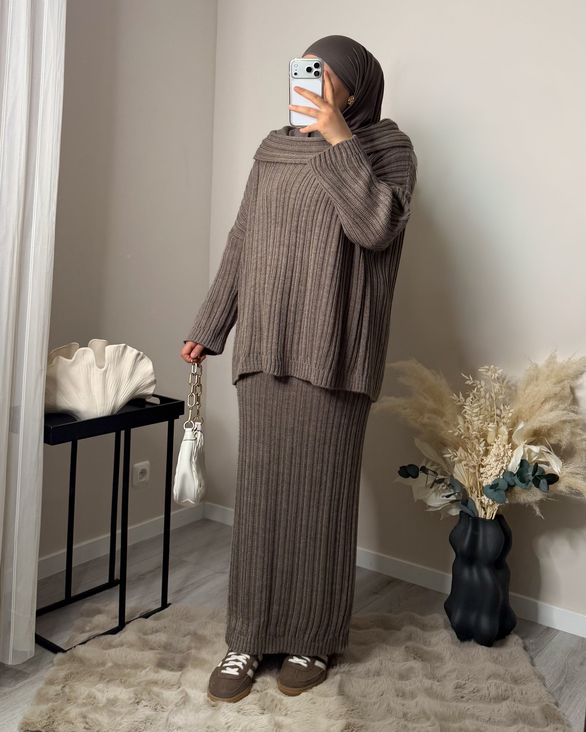 Unser Model ist 1,65m groß und trägt unsere Einheitsgröße.